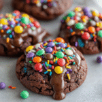 Cosmic Brownie Cookies bring the nostalgic flavors of cosmic brownies into delightful cookie form. These treats feature a thick, fudgy center complemented by rich chocolate and a colorful sprinkle topping, making them perfect for all ages.