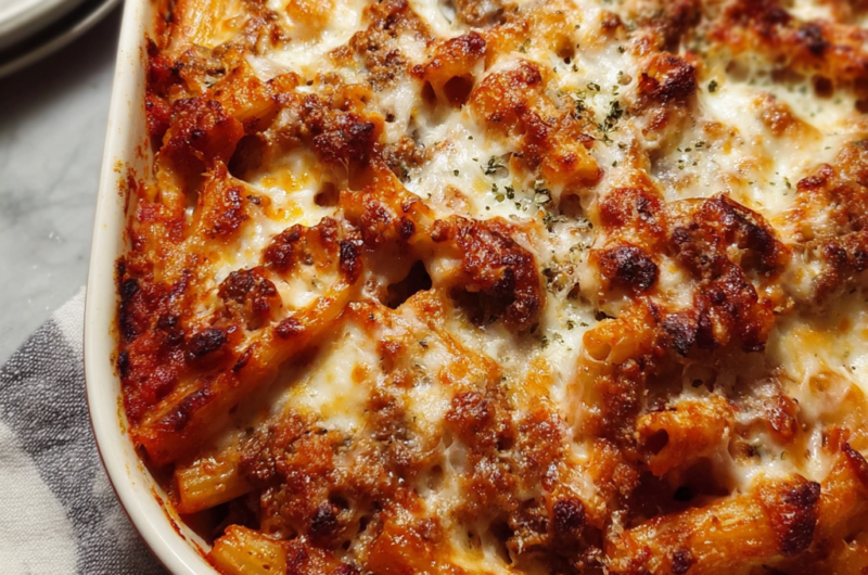 Savory Baked Ziti Featuring Italian Sausage
